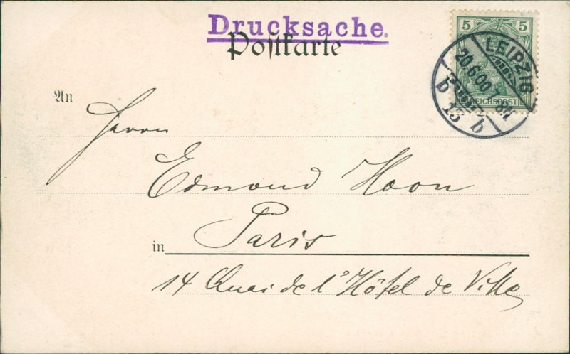Alte Ansichtskarte aus Leipzig, gelaufen am 20.06.1900 von Leipzig nach Paris.