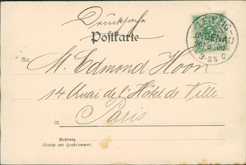 Alte Ansichtskarte aus Leipzig, gelaufen um 1900 von Leipzig Lindenau nach Paris.