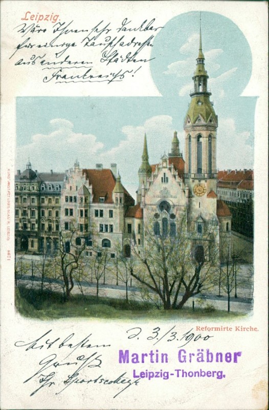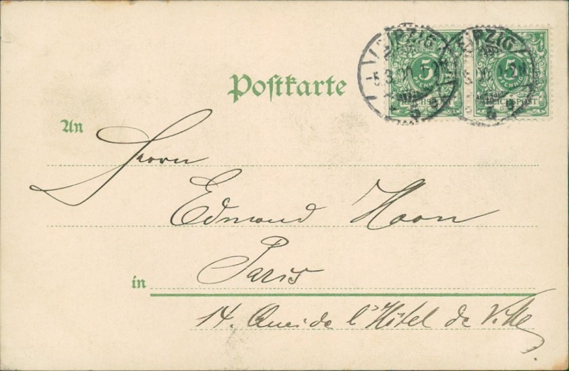 Alte Ansichtskarte aus Leipzig, gelaufen am 05.03.1900 von Leipzig nach Paris.