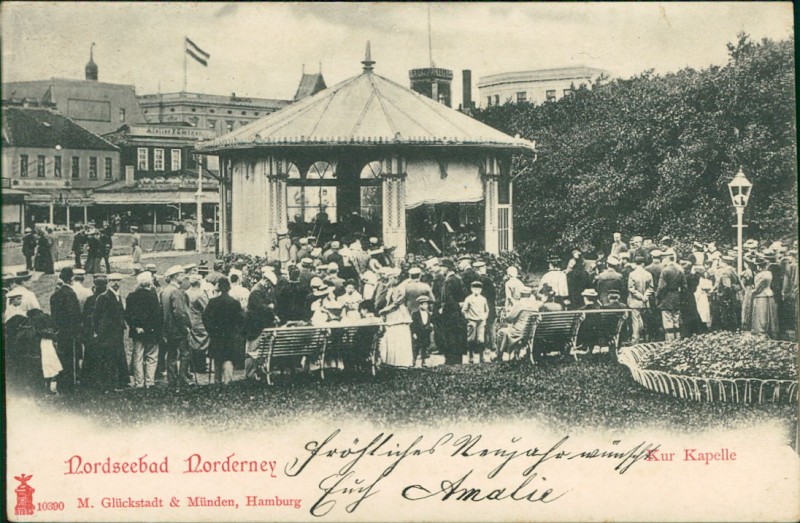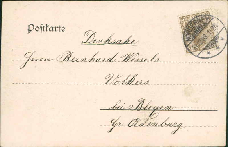 Alte Ansichtskarte aus Norderney, gelaufen am 31.12.1903 von Norderney nach Volkers bei Bleyem.