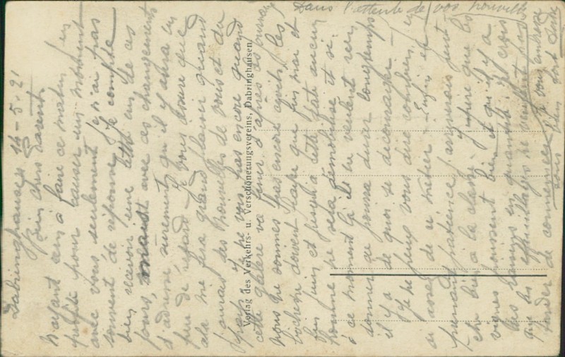 Alte Ansichtskarte aus Wermelskirchen-Dabringhausen, beschrieben am 14.05.1921.