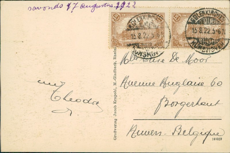 Alte Ansichtskarte aus Geilenkirchen, gelaufen am 15.08.1922.