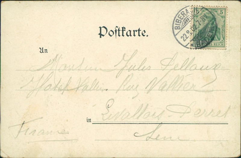 Alte Ansichtskarte aus Biberach/Baden, gelaufen am 22.08.1902.
