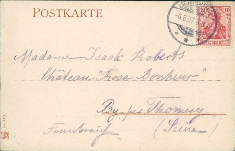 Alte Ansichtskarte aus Baden-Baden, gelaufen am 06.08.1907.