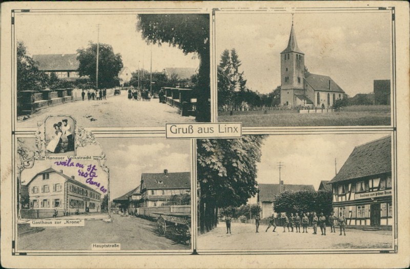 Alte Ansichtskarte aus Rheinau-Linx, beschrieben um 1923.