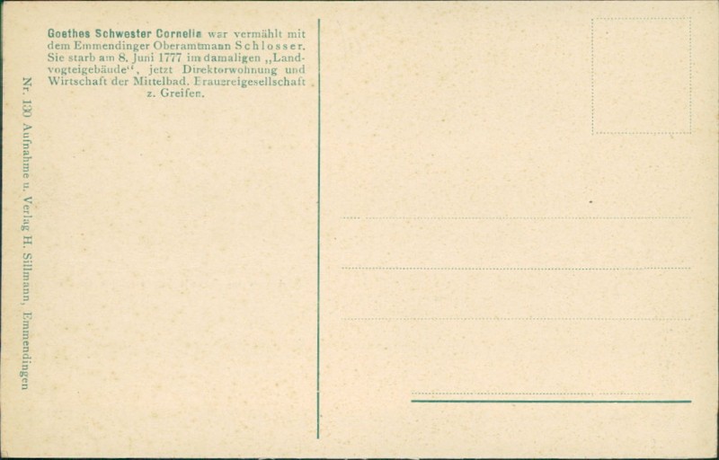 Grabstätte von Cornelia Schlosser geb. Goethe, Sterbehaus von Cornelia Schlosser, eb. Goethe