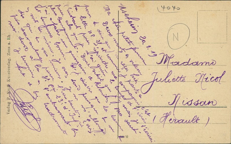 Alte Ansichtskarte aus Neuss-Uedesheim, beschrieben am 20.01.1919.