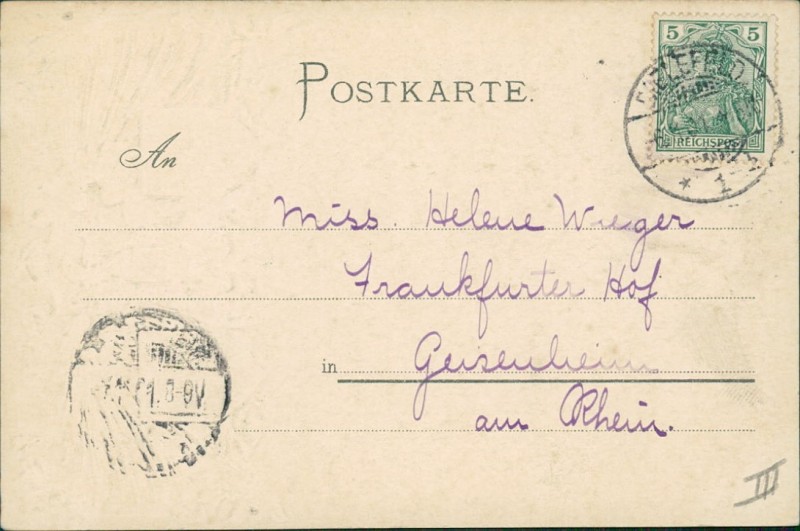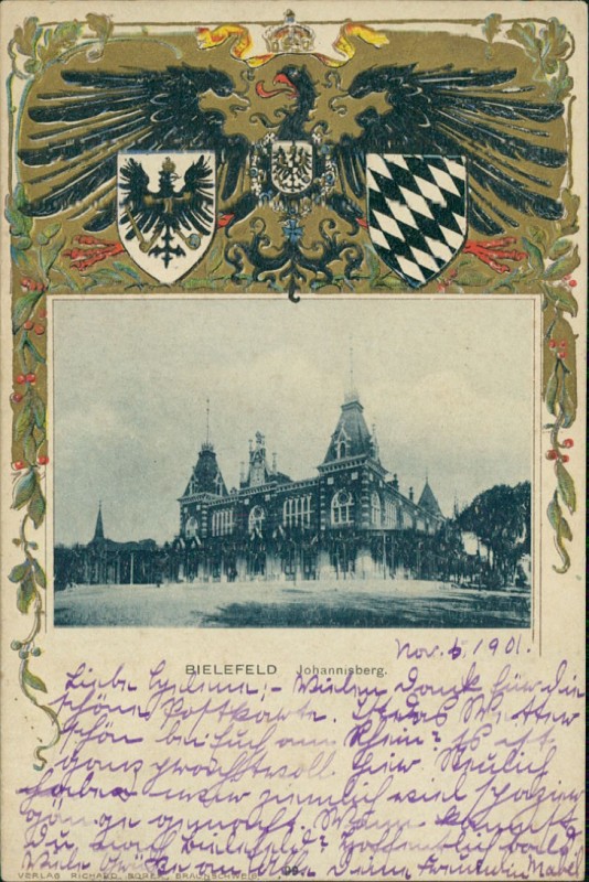 Alte Ansichtskarte aus Bielefeld, gelaufen am 06.11.1901 von Bielefeld nach Geisenheim am Rhein.
