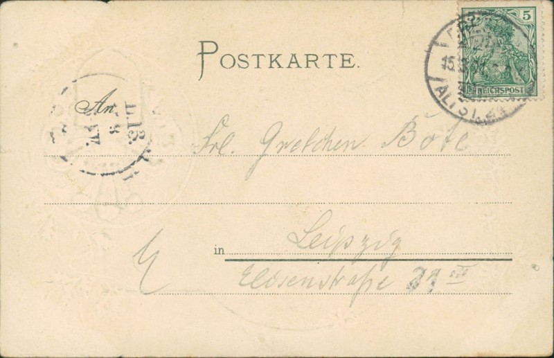 Alte Ansichtskarte aus Dresden, gelaufen am 15.03.1901 von Dresten Altstadt nach Leipzig.