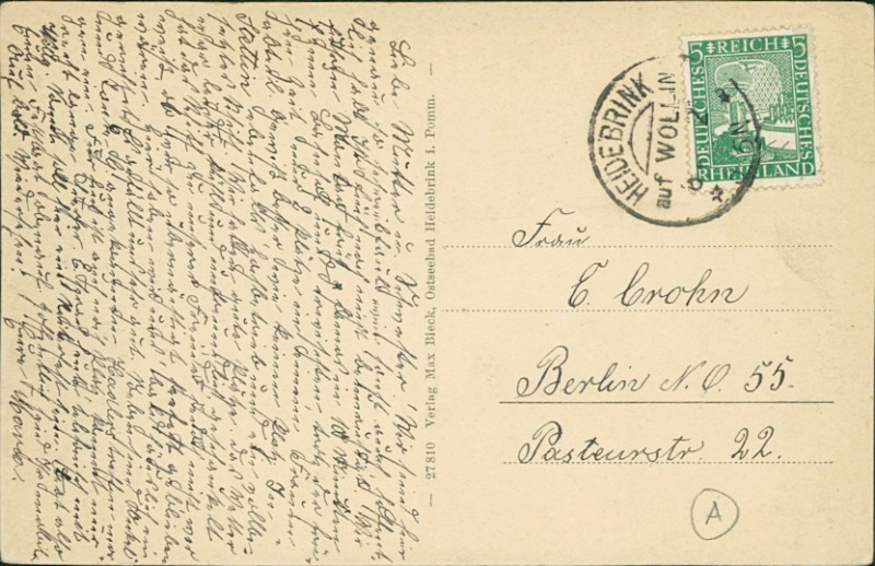 Alte Ansichtskarte aus Heidebrink, gelaufen um 1920 von Heidebrink auf Wollin nach Berlin.