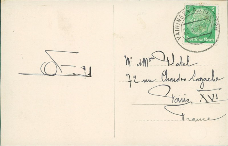 Alte Ansichtskarte aus Stuttgart, gelaufen am 22.03.1937 von Vaihingen a. d. Fildern nach Paris.