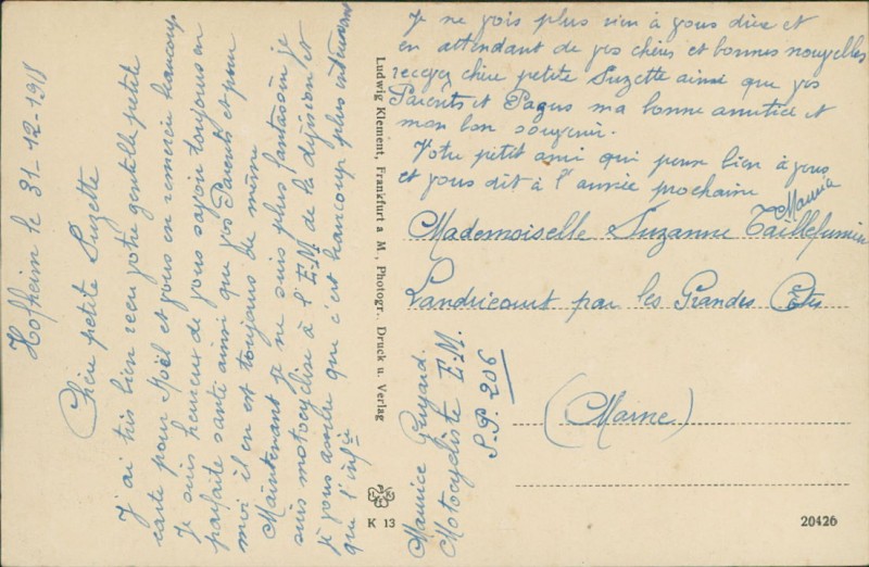 Alte Ansichtskarte aus Hofheim am Taunus, beschrieben am 31.12.1918.
