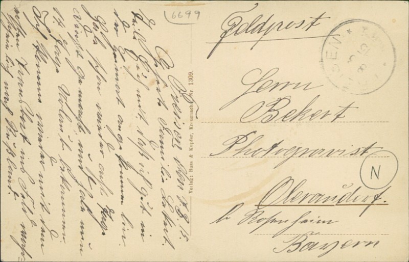 Alte Ansichtskarte aus Freisen, gelaufen am 08.03.1915.