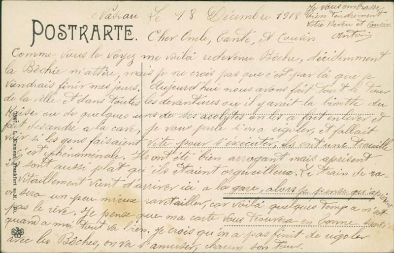 Alte Ansichtskarte aus Nassau, beschrieben am 18.12.1918.