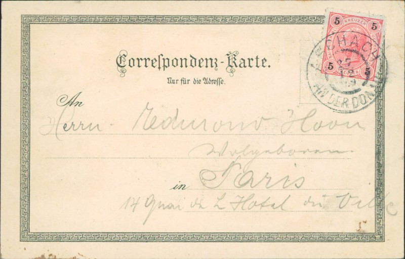Alte Ansichtskarte aus Aschach an der Donau, gelaufen um 1900 von Aschach an der Donau nach Paris.