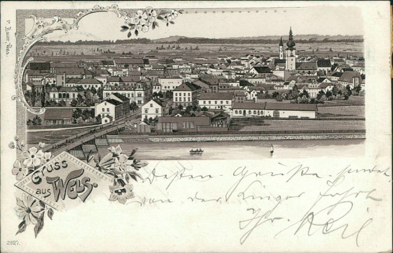 Alte Ansichtskarte aus Wels, gelaufen um 1900.