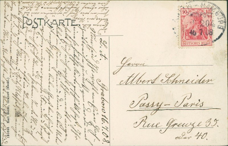 Alte Ansichtskarte aus Grabow, gelaufen am 16.07.1908.