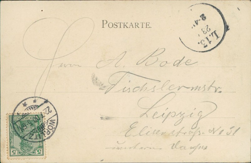 Alte Ansichtskarte aus Oranienbaum-Wörlitz, gelaufen am 22.07.1900 von Wörlitz nach Leipzig.