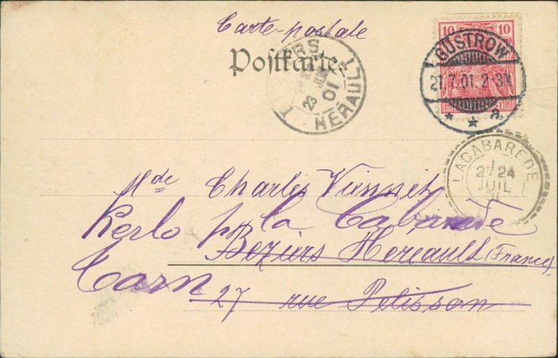 Alte Ansichtskarte aus Güstrow, gelaufen am 21.07.1901.