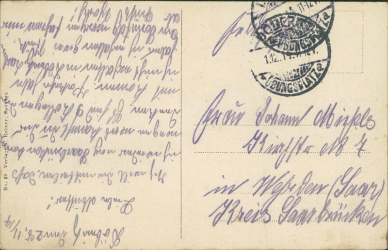Alte Ansichtskarte aus Rohrbeck (Dallgow-Döberitz), gelaufen am 01.12.1914 von Döberitz Übungsplatz nach R. Reimer, Spandau.