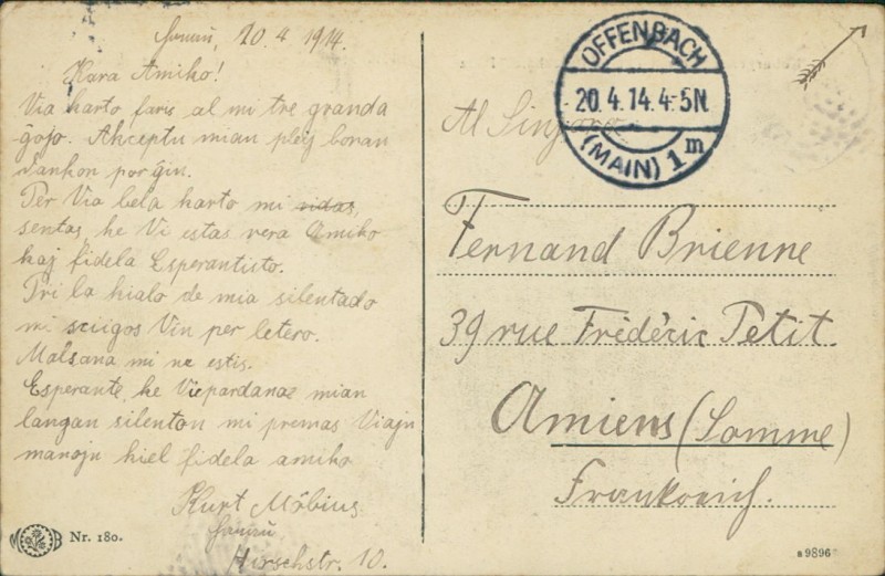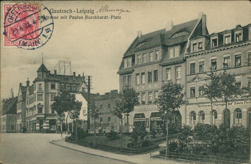 Alte Ansichtskarte aus Markkleeberg-Gautzsch, gelaufen am 20.04.1914 von Offenbach (Main) nach Amiens (Somme).