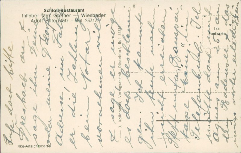 Alte Ansichtskarte aus Wiesbaden, beschrieben um 1940.