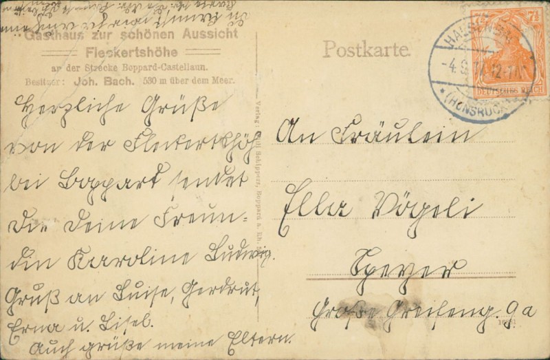 Alte Ansichtskarte aus Kamp-Bornhofen (Loreley), gelaufen am 04.09.1917.