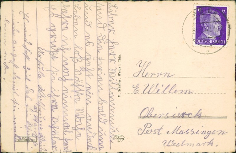 Alte Ansichtskarte aus Weida, gelaufen um 1942.