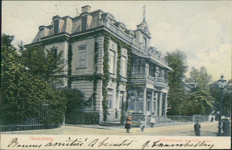 Alte Ansichtskarte aus Bonn-Bad Godesberg, gelaufen am 31.08.1909 von Godesberg nach Villefranche.