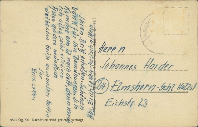 Alte Ansichtskarte aus Hasloch (Kreuzwertheim), gelaufen um 1919.