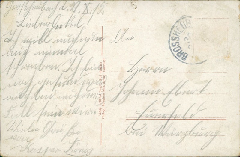 Alte Ansichtskarte aus Großheubach, gelaufen am 30.10.1915.
