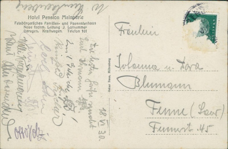 Alte Ansichtskarte aus Miltenberg, gelaufen um 1930.