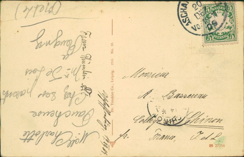 Alte Ansichtskarte aus Aschaffenburg, gelaufen am 20.12.1909.