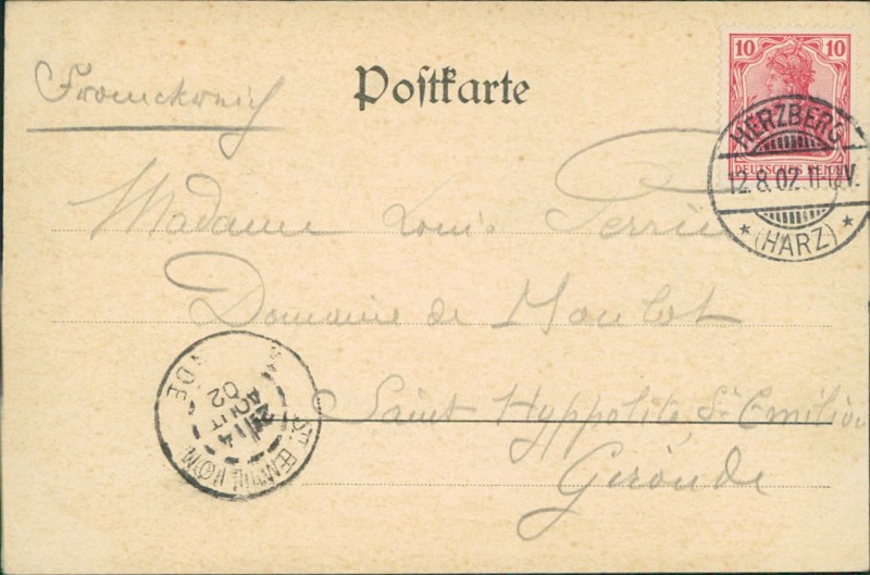 Alte Ansichtskarte aus Herzberg am Harz, gelaufen am 12.08.1902.