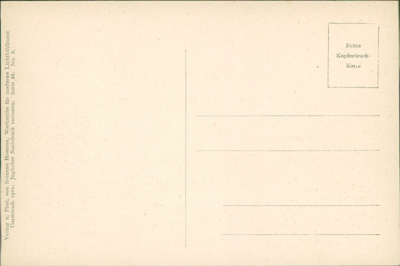 | Verlag | Verlag u. Phot. von Susanne Homann Werkstätte für moderne Lichtbildkunst, Darmstadt 1911 |