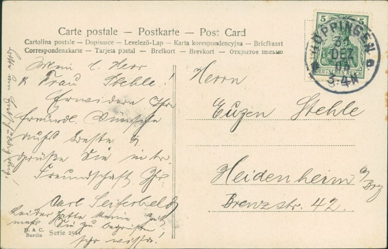 Alte Ansichtskarte, gelaufen am 31.12.1905 von Göppingen nach Heidenheim a/Brz.