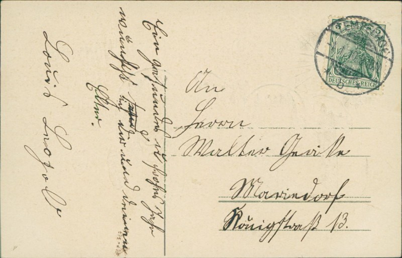 Alte Ansichtskarte, gelaufen am 01.01.1910 von Tempelhof nach Mariendorf.