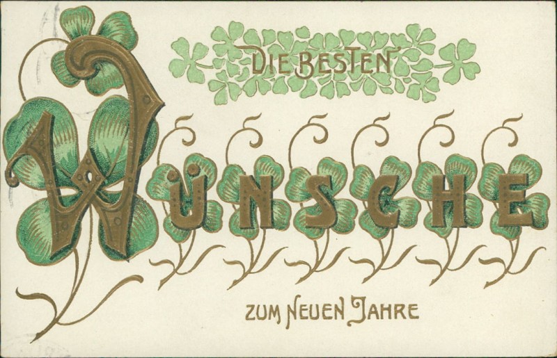Kleeblätter, Jugendstil-Dekor, Golddruck