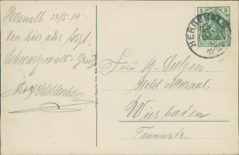 Alte Ansichtskarte aus Bad Herrenalb, gelaufen am 23.05.1910 von Herrenalb nach Wiesbaden.