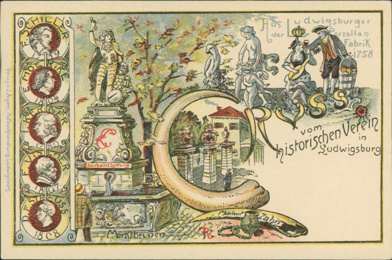 Alte Ansichtskarte aus Ludwigsburg, ungebraucht, gedruckt um 1900.