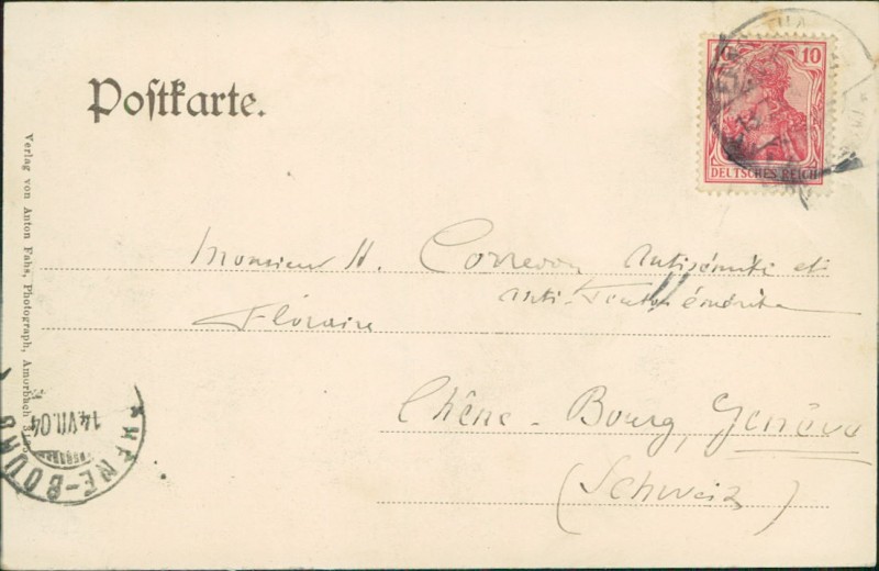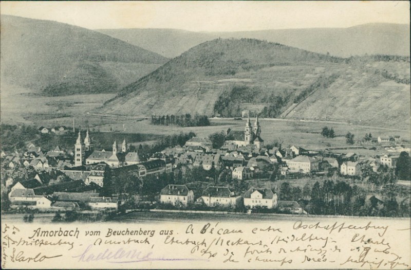 Alte Ansichtskarte aus Amorbach, gelaufen am 13.07.1904.