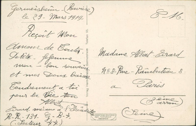 Alte Ansichtskarte aus Germersheim, beschrieben am 29.03.1919.