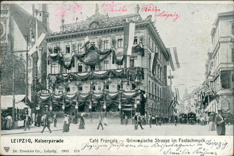 Kaiserparade. Café Francais - Grimmaische Strasse im Festschmuck