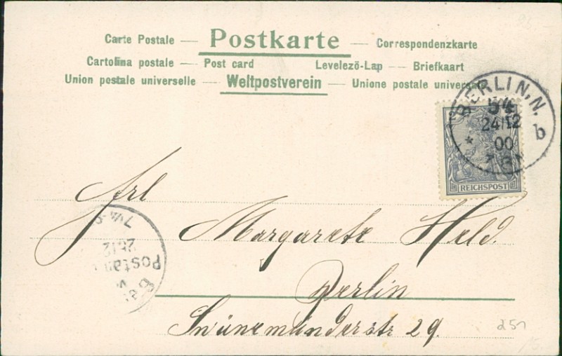 Alte Ansichtskarte, gelaufen am 24.12.1900 von Berlin nach Berlin.