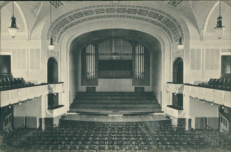 Festhalle. Grosser Saal mit Konzertnische u. Orgel. Erbaut: Architekt Herm. Goerke, Düsseldorf