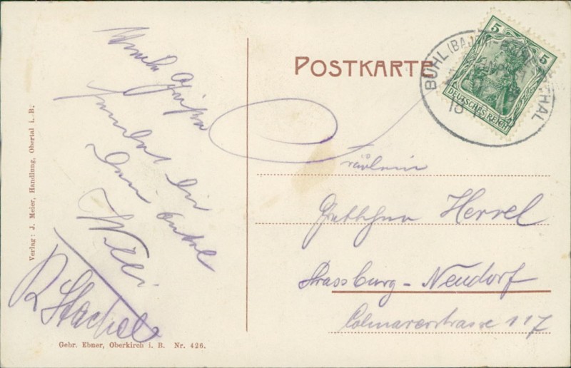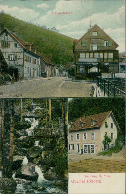 Alte Ansichtskarte aus Baiersbronn-Obertal, gelaufen am 18.10.1908 von Bühl (Baden)-Bühlerthal (Bahnpost) nach Strassburg-Neudorf.