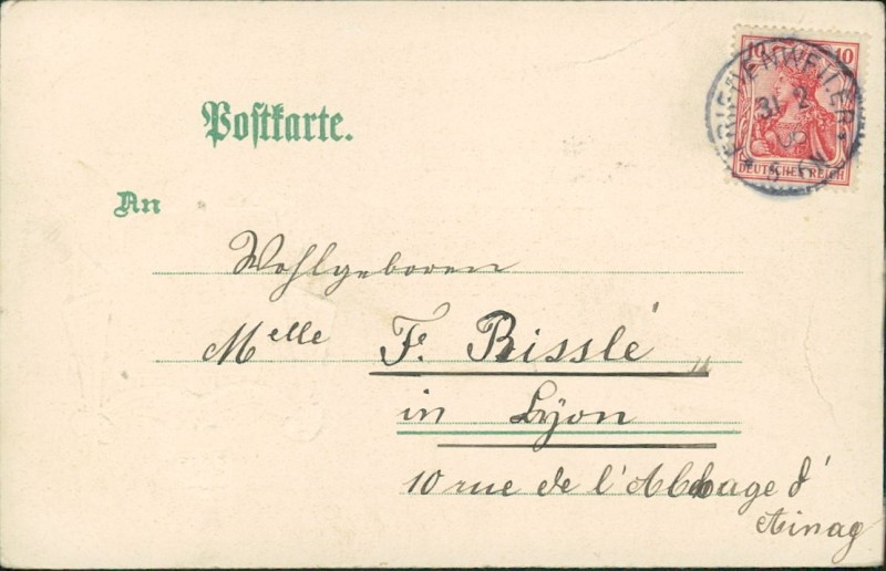 Alte Ansichtskarte aus Friedenweiler, gelaufen um 0 von Friedenweiler nach Lyon.