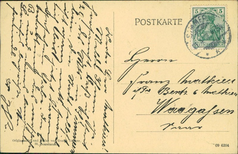 Alte Ansichtskarte aus Simmern, gelaufen am 21.04.1912 von Simmern nach Wadgassen.