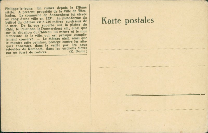 Alte Ansichtskarte aus Wiesbaden-Sonnenberg, ungebraucht, gedruckt um 1918.