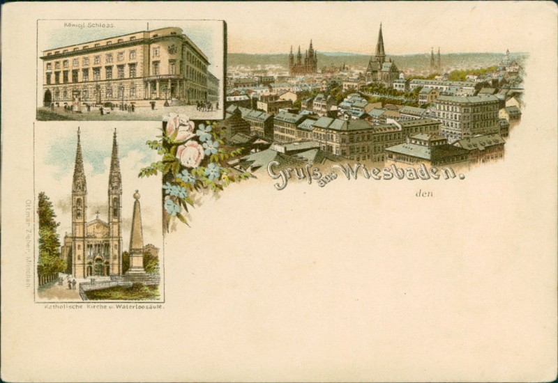 Alte Ansichtskarte aus Wiesbaden, ungebraucht, gedruckt um 1900.